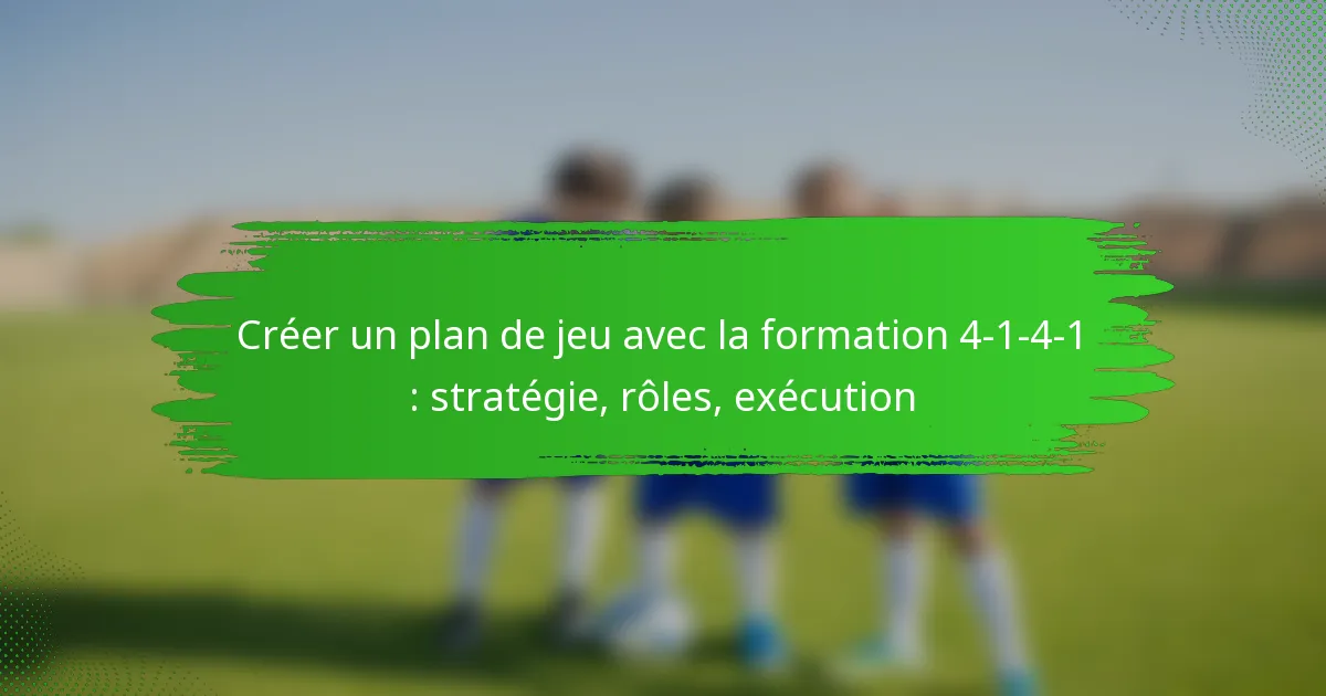 Pour exécuter efficacement la formation 4-1-4-1 à l’entraînement, concentrez-vous sur l’établissement de rôles clairs pour chaque joueur tout en promouvant le travail d’équipe et la communication. Cette formation met l’accent sur une forte présence au milieu de terrain et nécessite que les joueurs comprennent leurs responsabilités positionnelles et leurs mouvements tactiques.