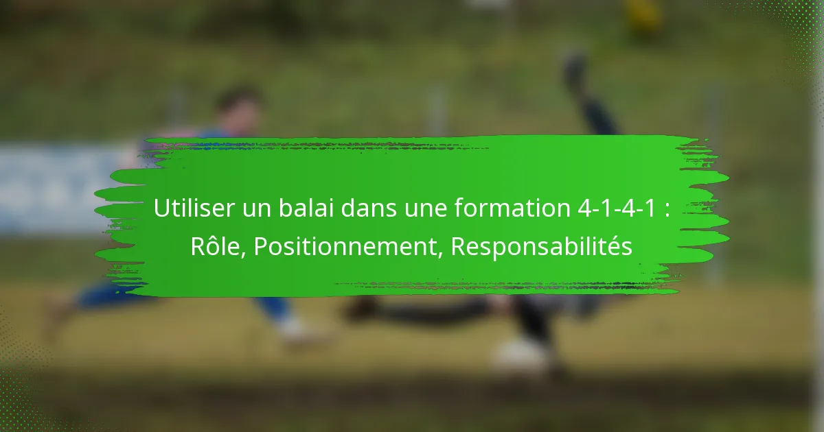 Le libéro dans une formation 4-1-4-1 joue un rôle crucial dans le maintien de la stabilité défensive tout en fournissant un soutien à la ligne arrière. Positionné au centre derrière le milieu de terrain et devant les défenseurs, le libéro doit être adaptable à diverses situations de jeu et formations adverses.